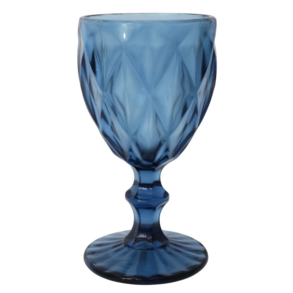 Wine glass made of blue glass, with a capacity of 250 ml and measuring Dia. 8 x H 15 cm. This elegant glass is perfect for serving wine, combining style and functionality. The colored glass adds a decorative and modern touch, while the durable material ensures long-lasting use. Ideal for everyday use, festive dinners, or special occasions, offering a refined and enjoyable drinking experience.