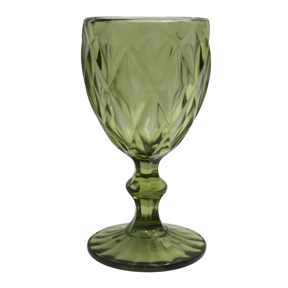 Wine glass made of green glass, with a capacity of 250 ml, measuring Dia. 8 x H 15 cm. This elegant glass is perfect for serving wine, combining style and functionality. The colored glass adds a unique and decorative touch, while the durable material ensures long-lasting use. Ideal for both everyday enjoyment and special occasions.