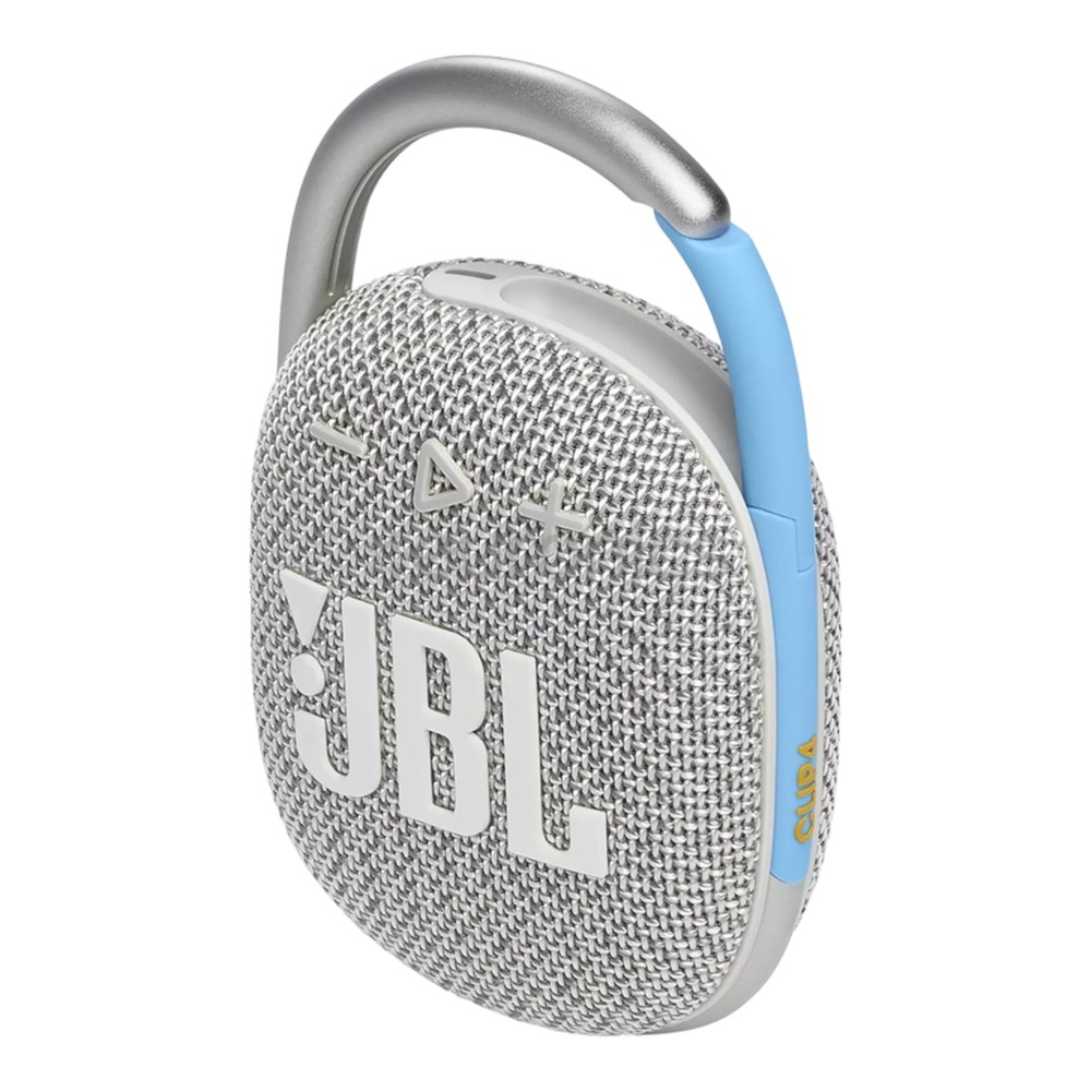 This bluetooth speaker delivers "JBL Original Pro" sound for up to 10 hours. Fully wrapped in colorful materials with expressive details inspired by current fashion, you can easily adapt it to your style. Although small, it offers impressive JBL sound regardless of size of its small size. With its durable clip, this speaker can also be attached to your clothes or backpack, making it your favorite companion at all times. The JBL Clip 4 bluetooth speaker is completely waterproof (level: IP67).