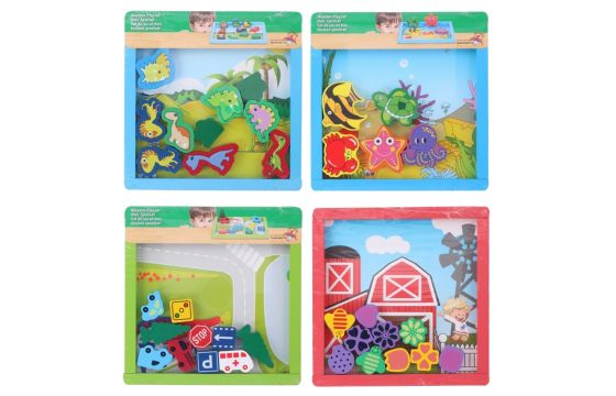 Children's toy, made of wooden material, with different shapes that can be arranged by children to create various environments. This toy helps to develop perceptual skills and analytical skills in children. The constituent material and paint have no toxic or harmful content for children and the product is certified for safety in use. This product is suitable for use by children over the age of 18 months.