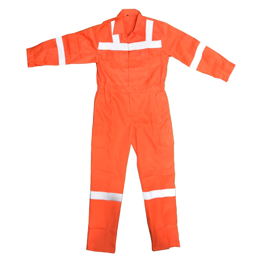 It's a truly functional garment for your basic workwear needs. In 65% cotton&35% polyester twill this durable coverall will provide lasting quality and value. Banded waist with elastic inserts and bi-swing back pleats for ease of movement Front plastik zipper 2 Front zippered chest pockets, 2 back pockets and 2 left pocket Reflective tape on arms and pants provide visibility in adverse weather conditions