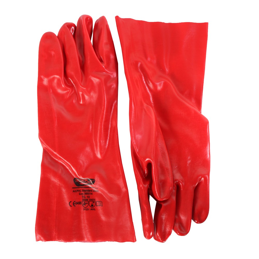 Work Gloves PVC with red color, enabling the prevention of injury by acids or pests .We different agents due to their shape and size that they protect to the height of the joints of the hands