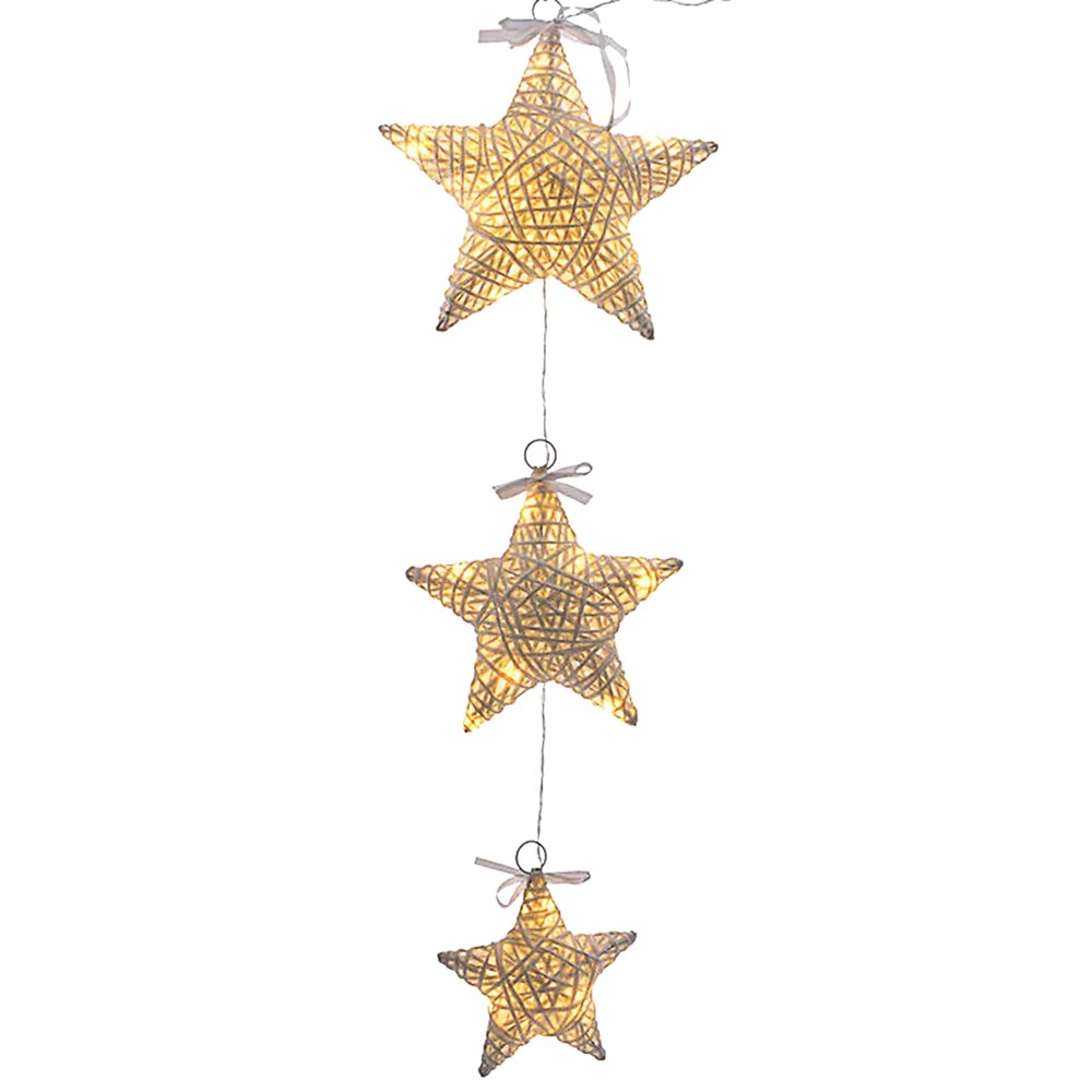 Xmas decoration, string of stars, led light, indoor use, L8.5xW25xH75 cm, white/warm white