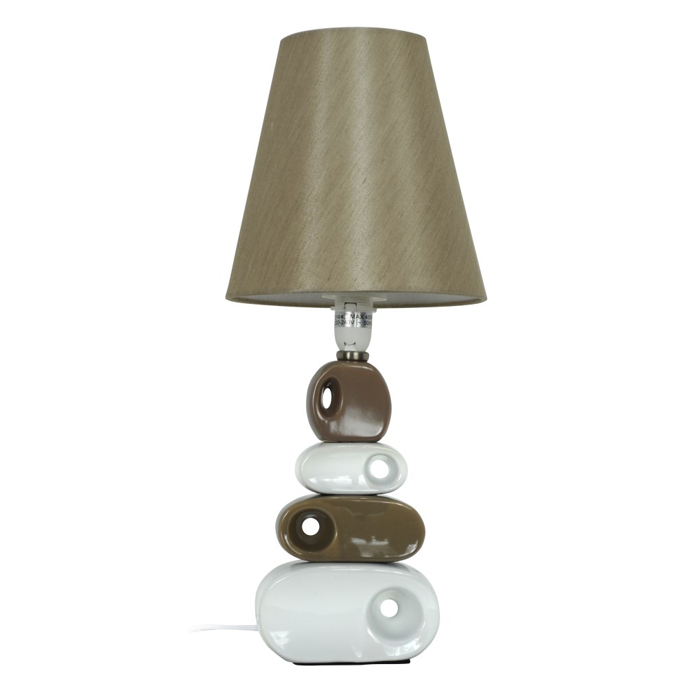 Abazhur E27 1x40W me trup qeramik te bardhe & kaf, koke tekstili kaf