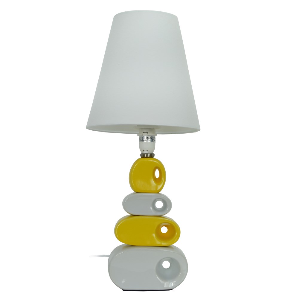 Ndricuesi I tavolines n'a jep ngrohtesi ne ambjentet tona, forma e tij e vecante dhe ngjyra e tij E bardhe/verdhe krijon nje reflektim te bute te fluksit te drites duke e bere ate te vecante per t'u perdorur ne dhomat e gjumit.