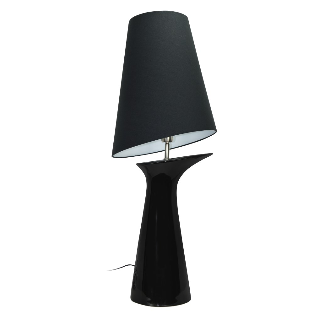 Abazhur E27 1x40W me trup qeramik te zi, koke tekstili te zez