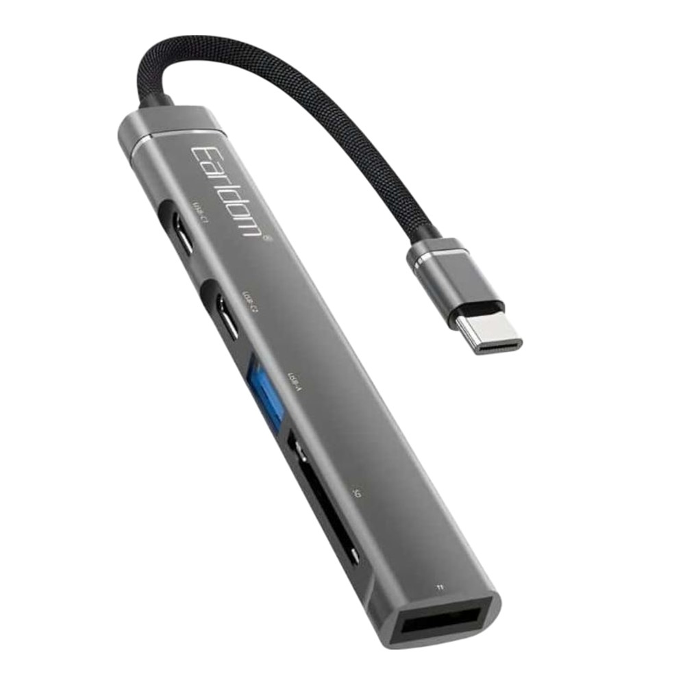 Adaptor 5 në 1, Earldom, HUB21, 2 hyrje Type C, hyrje USB, kartë SD dhe TF