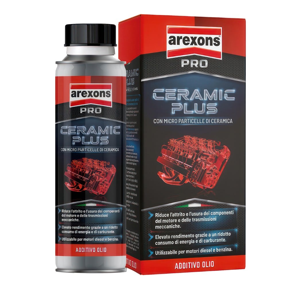 Vaji ka për qëllim kryesor lubrifikimin e pjesëve lëvizëse ndërmjet tyre. Gjatë punës së motorrit në disa momente përbërësit mekanikë punojnë në kushte lubrifikimi të pasigurta. Në këto momente, ndodh kontakti metal-metal dhe shfaqen problemet pasuese për shkak të konsumimit të rëndë: Gjatë fillimit të punës së motorrit: fërkimi dhe konsumimi janë në nivele shumë të larta me pasoja në konsumim vijues. Në temperatura të larta: vaji hollohet, duke reduktuar fuqinë e tij lubrifikuese. Në variacionet e ngarkesave: për shembull një akselerim "i fortë". Përveç kësaj, mund të ndodhin: Veshja e fashove të pistonit që rezulton në shfaqjen e tymit të bardhë të tepërt në gazrat e shkarkimit. Konsumimi i tepërt i vajit të motorrit. Lubrifikant i ndotur nga krijimi i llumit dhe depozitimeve për shkak të fërkimit të tepruar. Ceramic Plus mund të zgjidhë të gjitha këto probleme që lindin gjatë punës së motorrit. Ai ka këto veti: Redukton fërkimin dhe konsumimin e komponentëve të motorrit dhe transmisioneve mekanike. Rrit jetëgjatësinë dhe ndikon për një punim të qetë të motorrëve dhe transmisioneve. Siguron efikasitet të lartë falë konsumit të reduktuar të energjisë dhe karburantit. Redukton emetimet e ndotësve. Përshtatet mirë me të gjithë lubrifikantët dhe vajrat. Veti të jashtëzakonshme lubrifikuese dhe rrëshqitëse falë pudrës së nitridit të borit që është e shpërndarë shumë imët. Veti të mira lubrifikuese si në temperatura të larta ashtu edhe në temperatura të ulëta. Veti të mira rrëshqitëse dhe lubrifikuese. Stabilitet i lartë shpërndarjeje, pa sedimentim (ndarje vaji) për periudha të gjata. Reagon me sipërfaqen metalike dhe mbron motorrin deri në 50,000 km. FUSHAT E PËRDORIMIT: Ceramic Plus është një aditiv lubrifikues për motorrët, transmisionet, pompat dhe kompresorët (jo i përshtatshëm për transmisione automatike dhe freksionet në banjë vaji). Garanton lubrifikimin optimal edhe në kushtet më të rënda të punës së motorrit. Falë kombinimit sinergjik të agjentëve të teknologjisë së lartë si vaj, aditivë kundër fërkimit dhe kundër konsumit, grimcave të nitridit të borit, së bashku ato krijojnë një shtresë "qeramike" në metal duke reduktuar fërkimin dhe konsumimin. Rivesh sipërfaqet metalike dhe i mbron ato nga fërkimi. Rrit performancën, ndikon në funksionimin më të lehtë dhe jetëgjatësinë e motorrit. PËRDORIMI: Tundeni mirë para përdorimit. Shtojeni në vajin e ri dhe mundësisht në rastin e ndërrimit të vajit, në raportin prej 5% të sasisë së pranishme totale të vajit. Doza e rekomanduar: 60 mL për 1 litër vaj. Sasia prej 300 mL e aditivit është e mjaftueshme për të trajtuar deri ne 5 litër vaj. Vëzhgoni intervalet e ndërrimit të vajit që janë të parashikuara nga prodhuesi. PARALAJMËRIME: MOS e përdorni për transmisione automatike dhe freksione në banjë vaji.