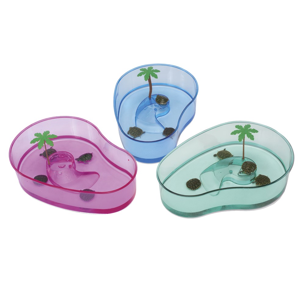 Ky tas i vogël i rrumbullakët i rrumbullakët është një tas i këndshëm dhe shumëngjyrësh për të mirëpritur kafshët tuaja të vogla. Sammy është një tabaka plastike transparente e disponueshme në tre ngjyra: fuchsia, blu dhe jeshile. Lehtë për tu pastruar për shkak të madhësisë së tij të vogël, ajo vjen e plotë me një ishull me palma, lehtësisht e arritshme nga breshkat falë hapave të vegjël.