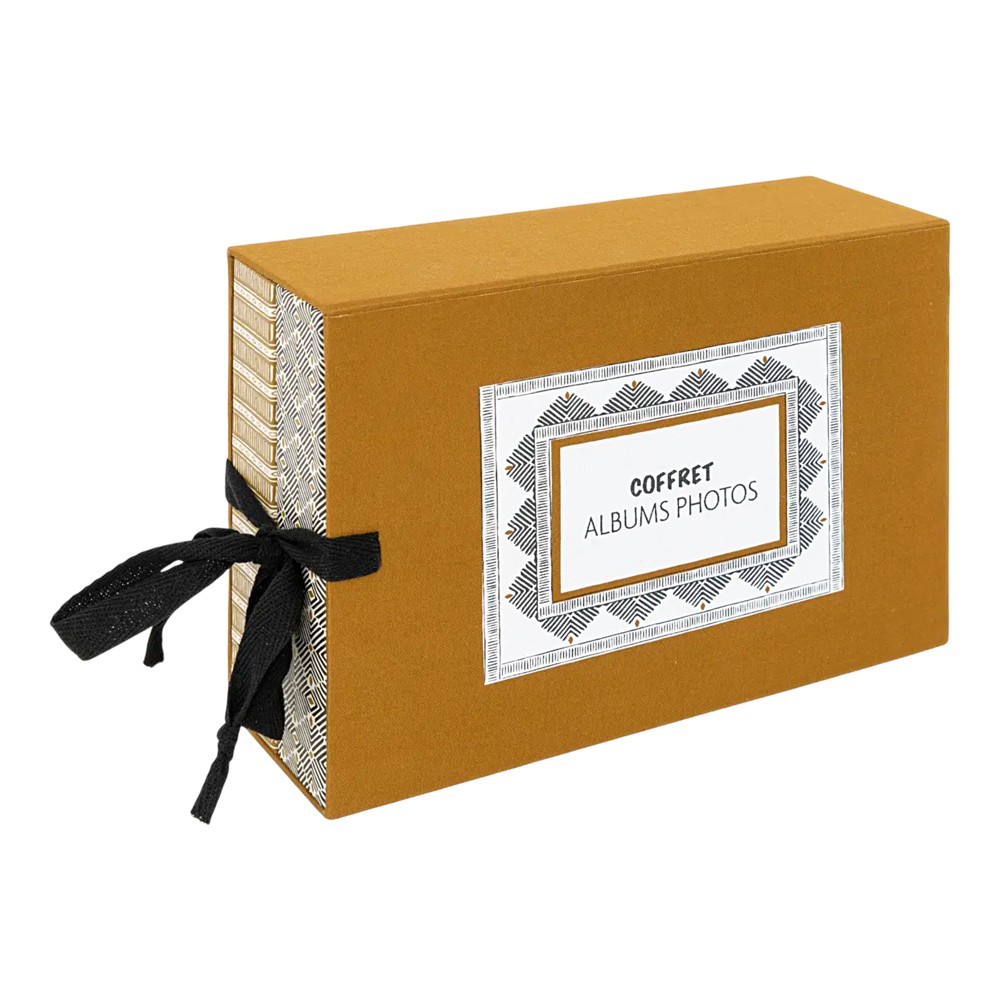 Albume fotografike në grupe prej kartoni dhe plastike. Seti përfshin 2 albume për fotot tuaja në ngjyrë të zezë dhe okër me një dizajn modern. Ato mund të mbajnë gjithsej 240 fotografi 10x15. Merrni albumet e fotografive për të mbajtur momentet më të veçanta të jetës suaj.