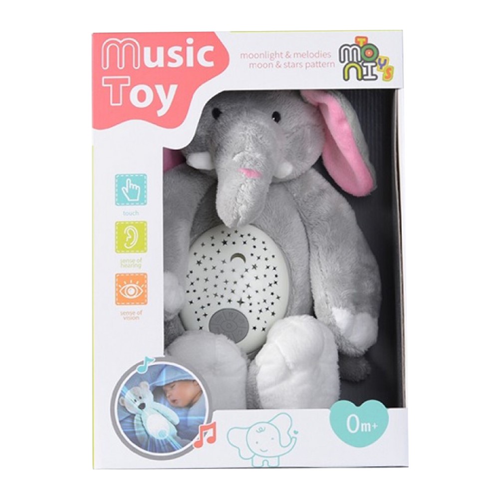 Ambazhur-arush për dhomë fëmijësh, elephant me drita dhe muzikë prej materiali pelush, dhe me plastke. Në pjesën e barkut ka një plastikë me formë yjesh, e hëne të cilat luajnë rolin e projektorit.