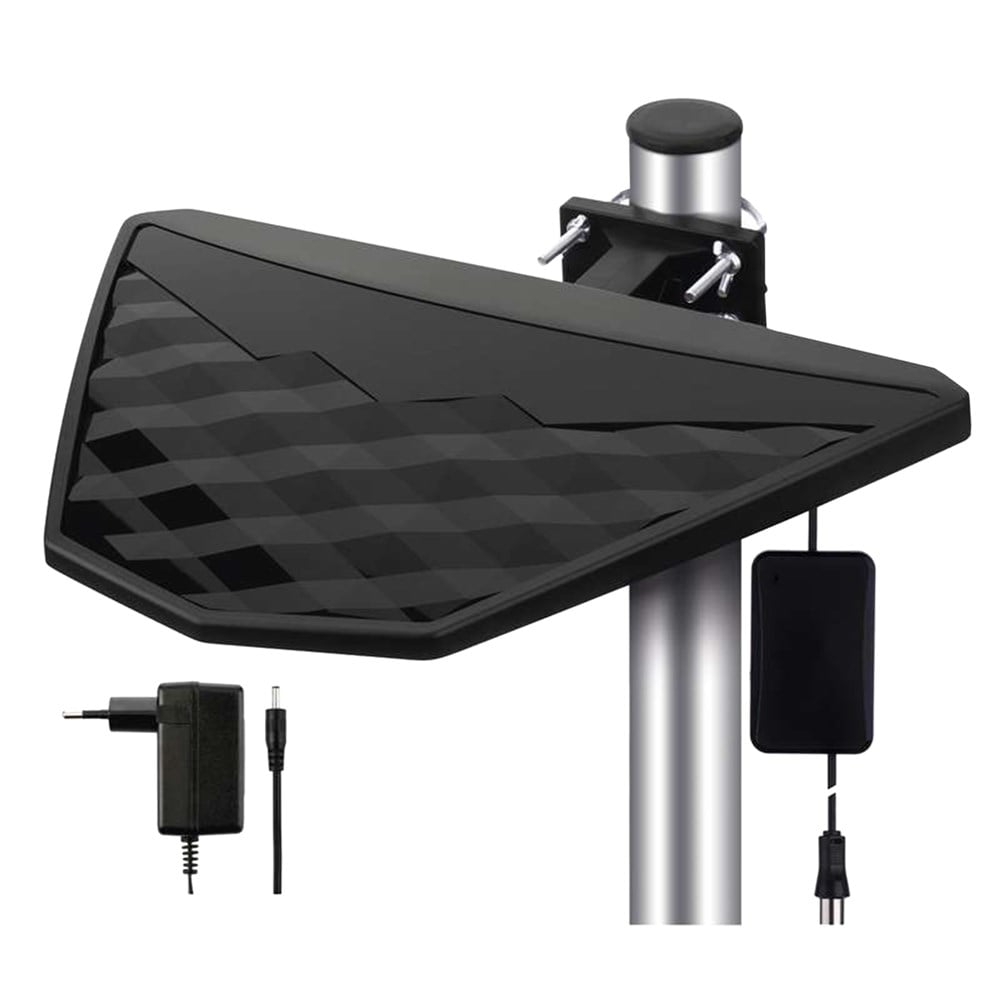 Antene TV e jashteme Digtale BEN-DIO2, LTE, 48dBi, Full HD broadcasts, 470–790 MHz, DC 6 V/50 mA, 5V/30 mA, 325 × 20 × 230 mm, IP65, ngjyre te zeze