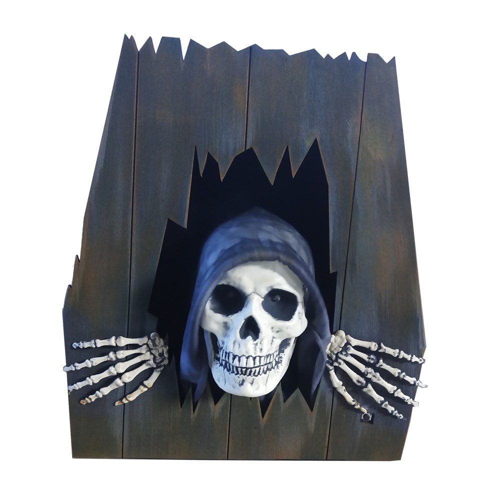 Arkivoli i animuar i Halloween - Skeleti shpëtues krijon një skenë të shkëlqyeshme. Skemë lëvizjeje e aktivizuar. I pajisur me bateri levizjet e skeletit jashte arkivolit.