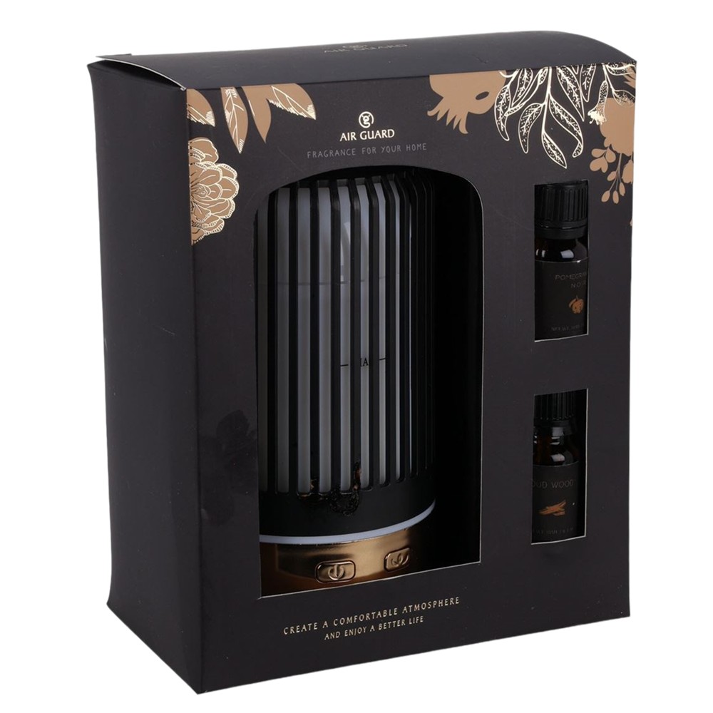 Aromatizuesi i ambientit me 2 aroma të ndryshme do mbajë ambjentet e shtëpisë tuaj gjithnjë të freskëta. Ideuar në qelq ngjyrë të zezë dhe floriri ky aromatizues jo vetëm është praktik por edhe modern. Seti përbëhet nga një difuzor dhe 2 rimbushje nga 10 ml secili me 3 aroma të ndrryshme.