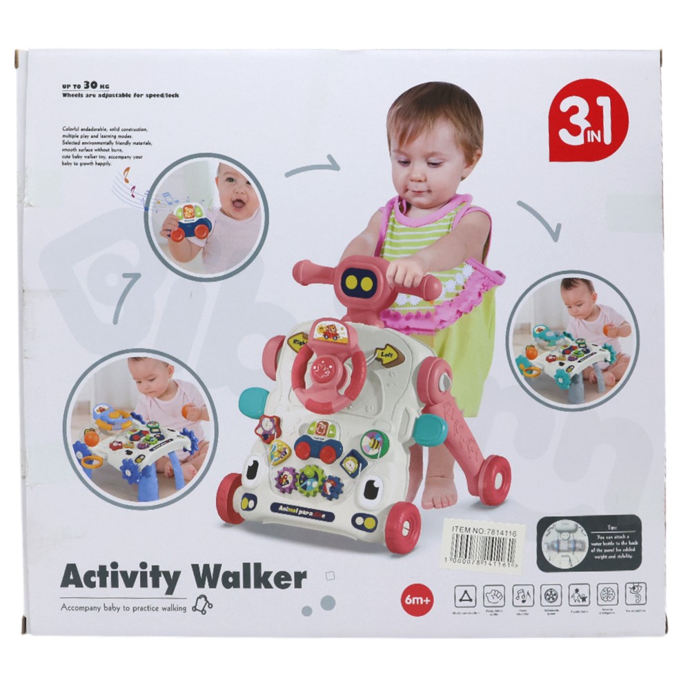 Ky Baby Walker 3 në 1 është dizajnuar për të ndihmuar foshnjat në zhvillimin e aftësive motorike dhe lëvizjen e pavarur në mënyrë të sigurt. E përshtatshme për fëmijët mbi 6 muaj, kjo lodër funksionon si një walker, si lojë interaktive dhe si mjet zhvillimi për koordinimin sy-dorë. Me dimensione 39x35x14 cm, baby walker-i është i lehtë për tu përdorur dhe i dizajnuar për të ofruar stabilitet dhe siguri gjatë hapave të parë të fëmijës. Funksioni 3 në 1 e bën këtë produkt të përshtatshëm për lojë të ndryshme: mund të përdoret si walker për të nxitur ecjen, si panel aktivitetesh për stimulim të shqisave, dhe si lojë interaktive për zhvillimin e koordinimit dhe kreativitetit.