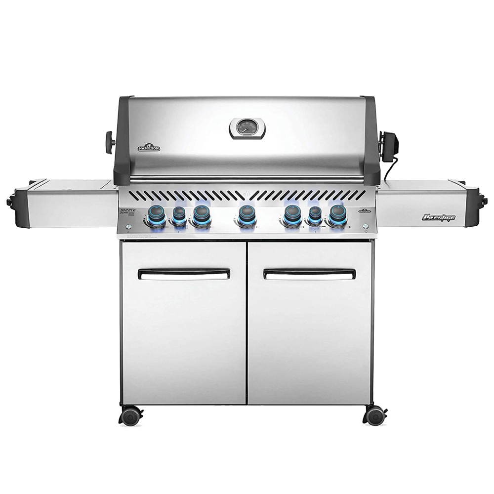 Barbekju me gaz prej çeliku inox Napoleon Prestige 665 me ndezës anësor dhe ndezës të pasëm është një grilë e qëndrueshme. Me pesë ndezës kryesorë, një djegës të pasme rotiserie dhe një kapak të lartë të sipërm, kjo zgarë ka gjithçka që ju nevojitet për të krijuar ushqime perfekte. Raftet anësore ofrojnë shumë hapësirë përgatitore, përfshirë një hapës të integruar të shisheve, një kapak dhe një panel kontrolli të ri elegant.
