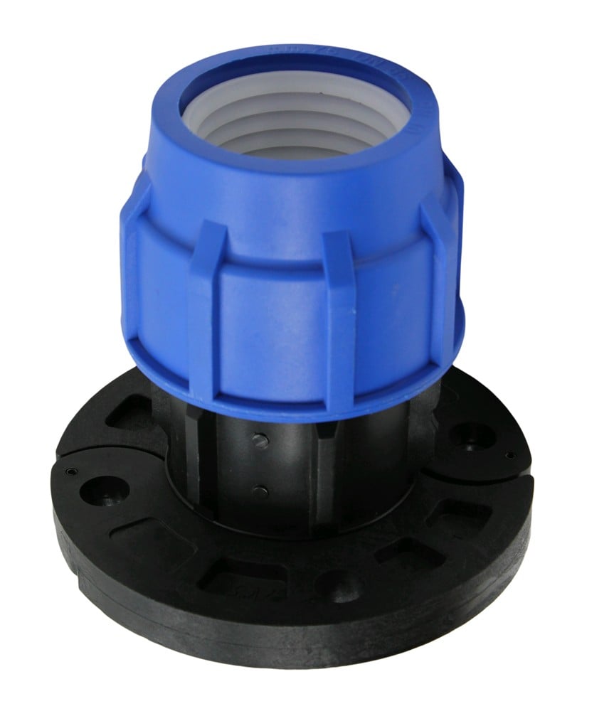 Bashkues me fllanxhe 75x2-1/2" prej PP përdoret gjëresisht sot në Europe për instalimet e linjave ujësellëse. Adaptori bën të mundur bashkimin e tubit prej HDPE me valvulat, saracineskat, matësit e ujit etj.