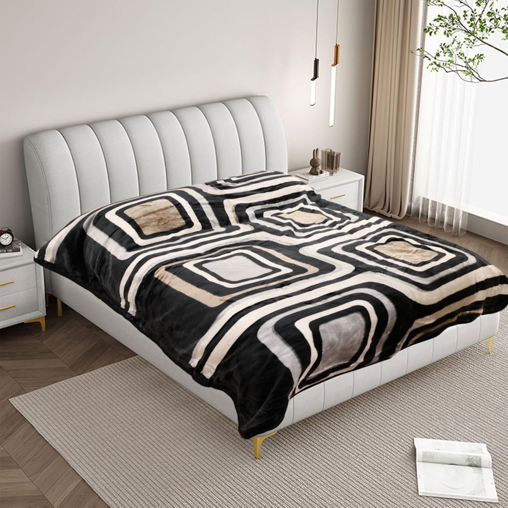 Blanket, Raschel, double, polyester, black/brown, 220x240 cm