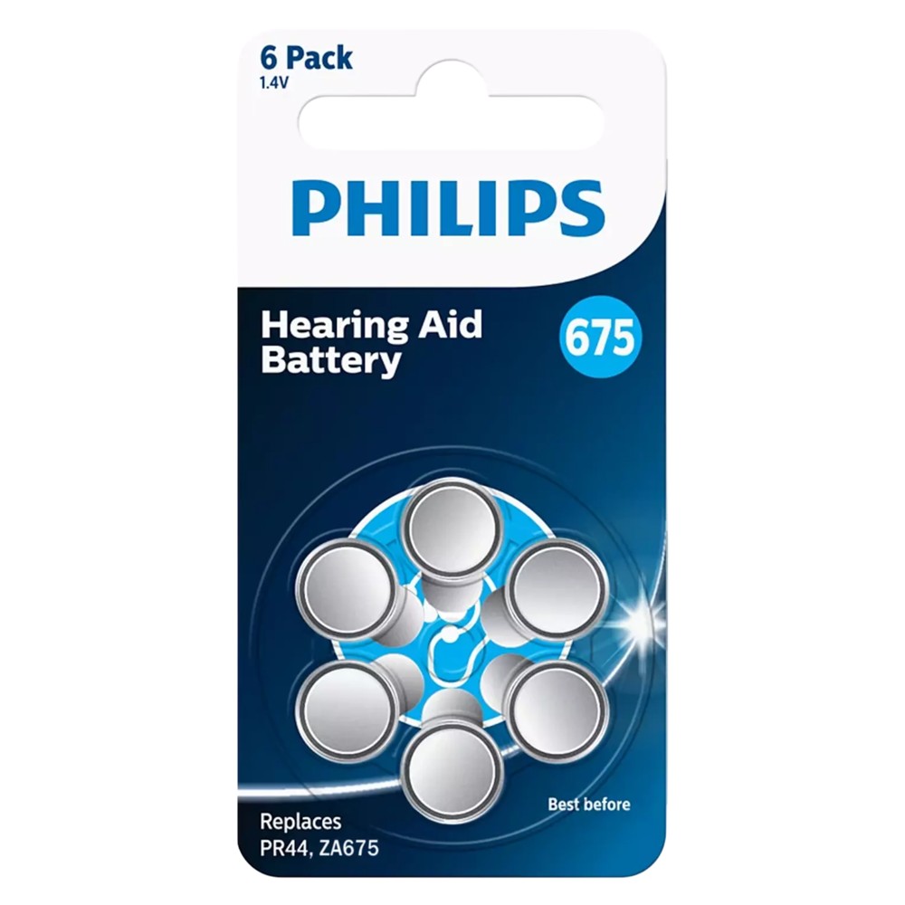 Bateritë me qeliza 6x Philips të tipit ZA675B6A/00, këto bateri janë një zgjidhje e shkëlqyer për të moshuarit të cilëve u ka mbaruar statusi i karikimit të aparatit të dëgjimit. Këto bateri janë të paketuara për 6 copë. Këto bateri nuk janë të rikarikueshme.