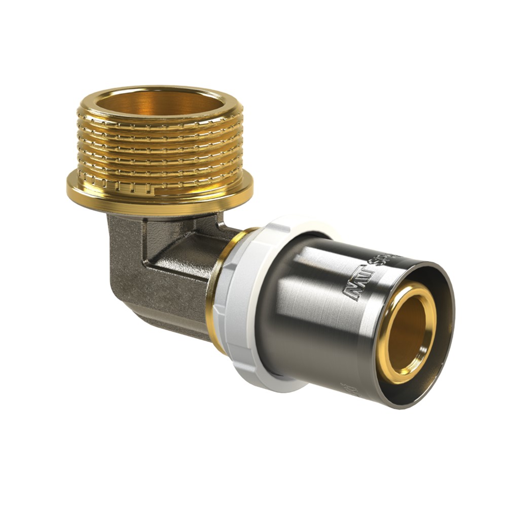 Bërryl 90 ° për multistrat, me presim, DN 20x1/2", M, bronz perdoret gjeresisht per instalimet me tub multistrat,perdoret kryesisht ne sistemet per uje te pijshem por dhe per sistemet e kaldajave dhe ujerave sanitare.