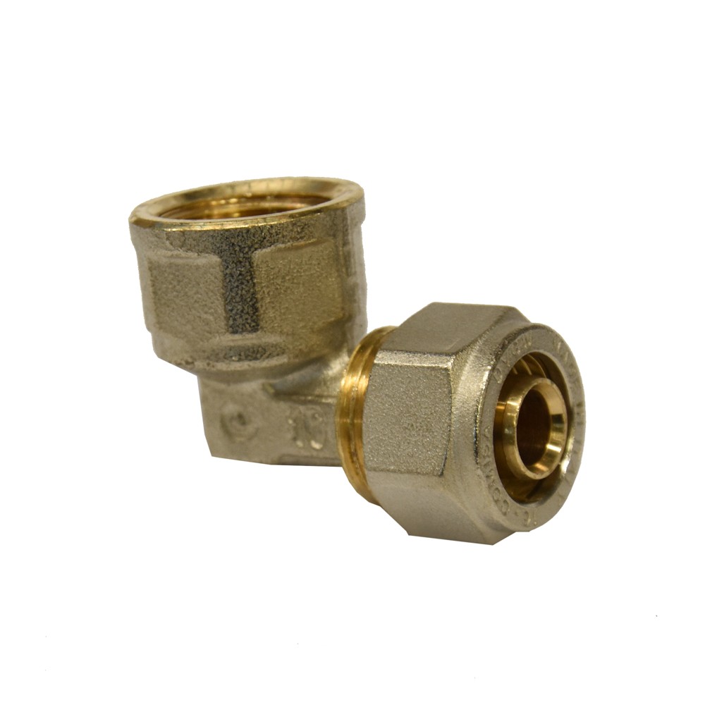 Bërryl 90 ° për multistrat, me shtrëngim, DN 16x1/2" F, bronz përdoret gjerësisht për instalimet me tub multistrat, përdoret kryesisht ne sistemet per ujë të pijshëm por dhe për sistemet e kaldajave dhe ujërave sanitare.