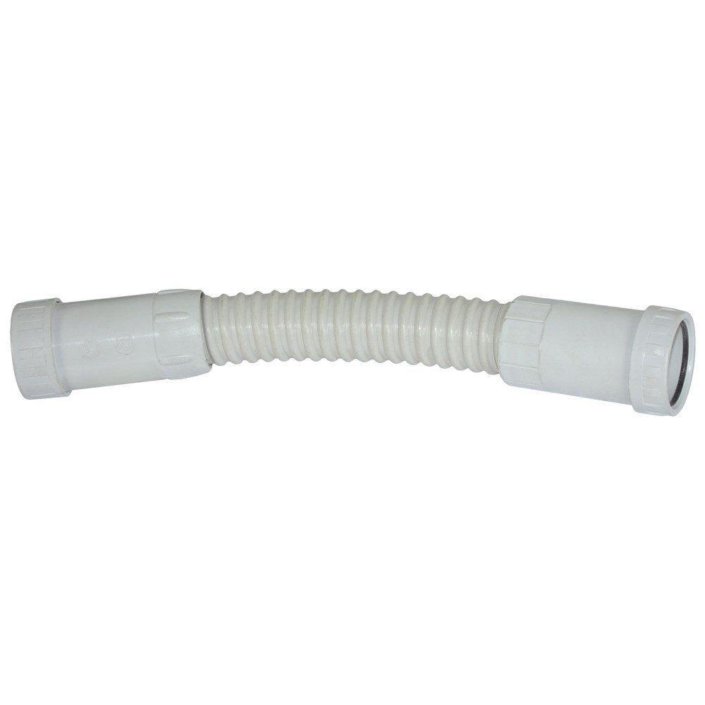 Bërryl fleksibël, Ø32 mm, PVC. Tubat fleksibël përdoren kryesisht për vendet me hapësira të kufizuara, kjo falë elasticitetit të tyre. Përbërja e tyre prej PVC i jep fortësi dhe e bën të pandikueshëm në cilësinë e ujit.