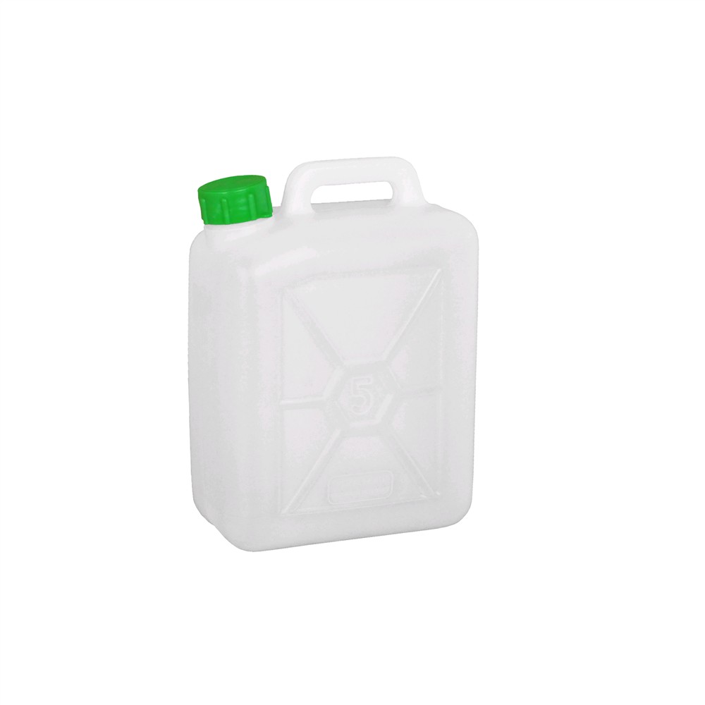 Bidon plastik 5 Lit. Përdoret gjerësisht për ruajtjen e pijeve të ndryshme si raki, verë, vaj, etj dhe te ujit. Eshtë një produkt mjaft cilesor dhe higjenikisht i pastër
