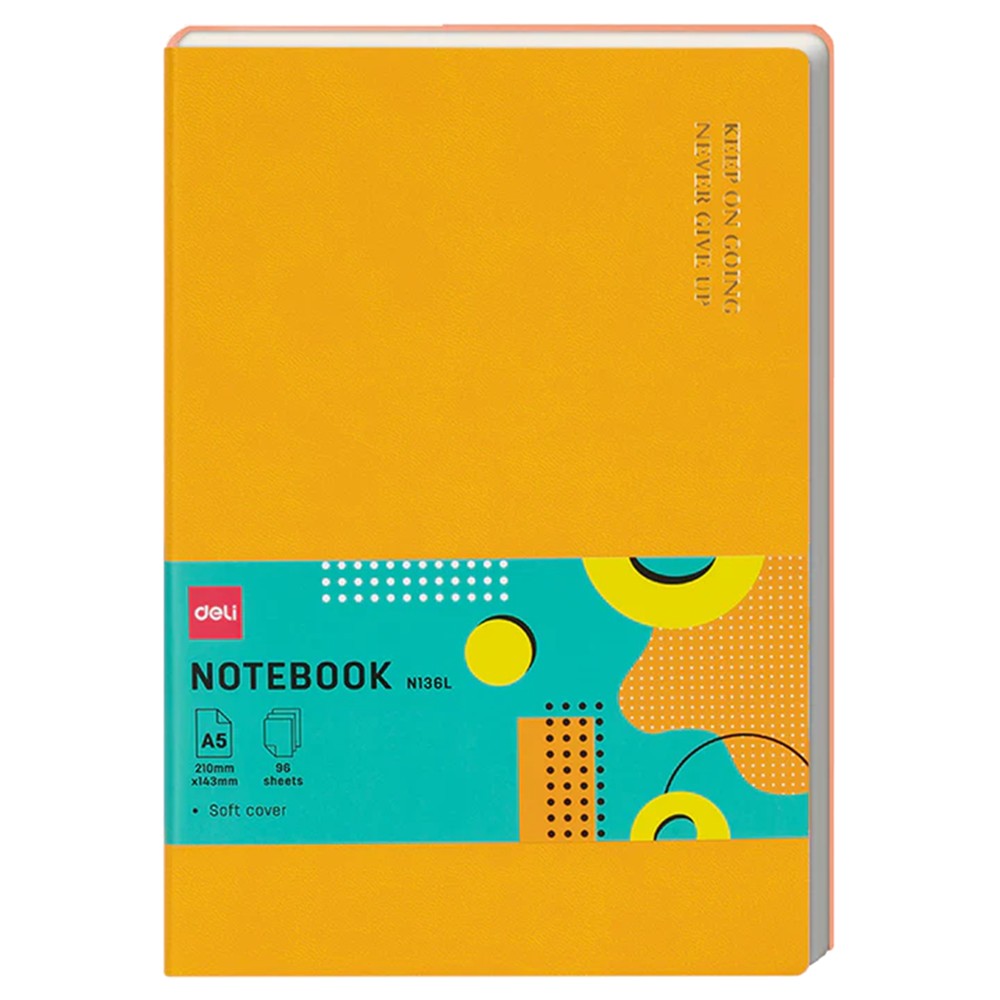 Bllok shenimesh Deli, A5, lëkurë në ngjyrë portokalli, me 96 fletë. Elegant dhe i qëndrueshëm, ideal për shënime dhe organizimin e tyre.