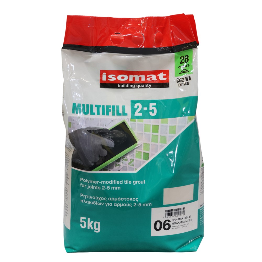 Multifill -Tile grout 2-5 është një stuko me ngjyrë me bazë çimentoje për pllakat. Ajo ofron fortësi mekanike dhe stabilitet të ngjyrës. E përshtatshme për fuga me gjerësi deri në 5 mm. Ajo klasifikohet si stuko për fuga pllakash e llojit CG2 sipas standardit EN 13888. Multifill -Tile grout 0-5 përdoret stukimin e fugave të pllakave në mure ose në dysheme, për përdorim në ambiente të jashtme dhe të brendshme.