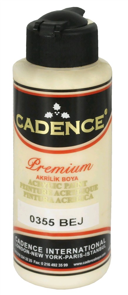 Bojë akrilike shumë përdorimshe. Cilësia e parë e bojërave akrilike përdoret për piktura dekorative. Boja akrilike është me bazë uji dhe jo toksike. Është gjysmë me shkëlqim mund të lyhet me sprite për të krijuar variacione shkëlqimesh. CADENCE ka një gamë të gjërë ngjyrash që mund të përzihen. Ka një qëndrueshmëri të lartë dhe paketime që ju përgjigjet të gjitha nevojave, mbulim të shkëlqyer dhe përzihet lehtë. Kjo bojë mund të përdoret në disa sipërfaqe si: dru, MDF, kanavas, suva, mure, qirinj, pëlhure, lëkure, polisterol, baltë polimer dhe metal.