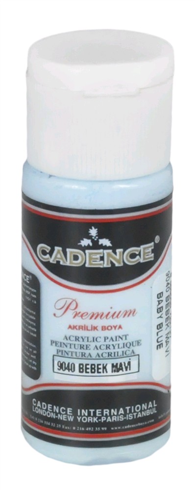 Bojë akrilike shumë përdorimshe. Cilësia e parë e bojërave akrilike përdoret për piktura dekorative. Boja akrilike është me bazë uji dhe jo toksike. Është gjysmë me shkëlqim mund të lyhet me sprite për të krijuar variacione shkëlqimesh. CADENCE ka një gamë të gjërë ngjyrash që mund të përzihen. Ka një qëndrueshmëri të lartë dhe paketime që ju përgjigjet të gjitha nevojave, mbulim të shkëlqyer dhe përzihet lehtë. Kjo bojë mund të përdoret në disa sipërfaqe si: dru, MDF, kanavas, suva, mure, qirinj, pëlhure, lëkure, polisterol, baltë polimer dhe metal.