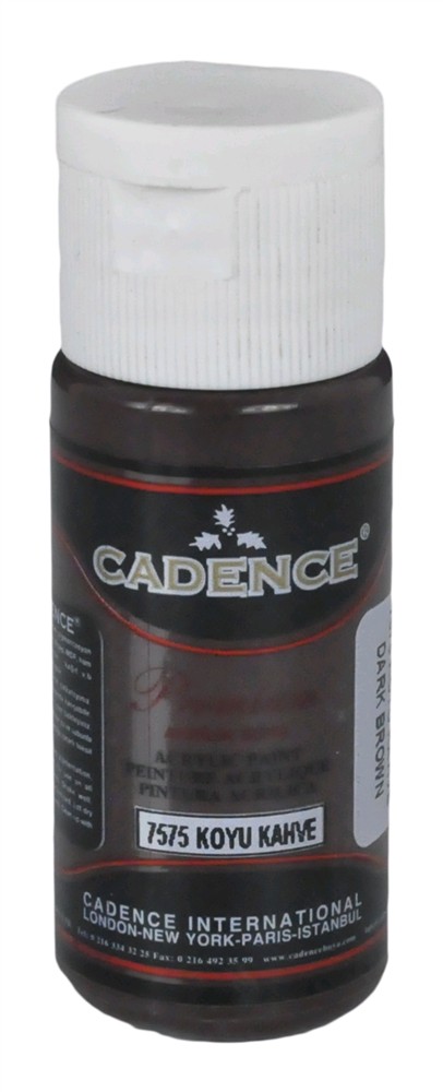 Bojë akrilike shumë përdorimshe. Cilësia e parë e bojërave akrilike përdoret për piktura dekorative. Boja akrilike është me bazë uji dhe jo toksike. Është gjysmë me shkëlqim mund të lyhet me sprite për të krijuar variacione shkëlqimesh. CADENCE ka një gamë të gjërë ngjyrash që mund të përzihen. Ka një qëndrueshmëri të lartë dhe paketime që ju përgjigjet të gjitha nevojave, mbulim të shkëlqyer dhe përzihet lehtë. Kjo bojë mund të përdoret në disa sipërfaqe si: dru, MDF, kanavas, suva, mure, qirinj, pëlhure, lëkure, polisterol, baltë polimer dhe metal.