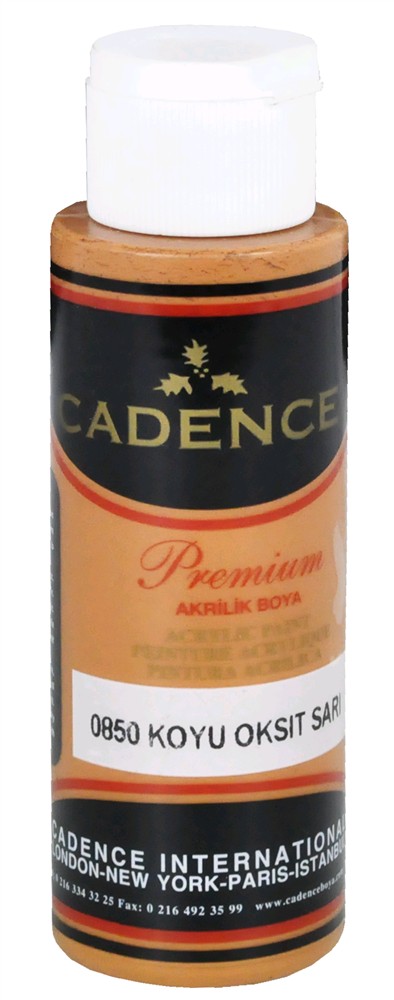 Bojë akrilike shumë përdorimshe. Cilësia e parë e bojërave akrilike përdoret për piktura dekorative. Boja akrilike është me bazë uji dhe jo toksike. Është gjysmë me shkëlqim mund të lyhet me sprite për të krijuar variacione shkëlqimesh. CADENCE ka një gamë të gjërë ngjyrash që mund të përzihen. Ka një qëndrueshmëri të lartë dhe paketime që ju përgjigjet të gjitha nevojave, mbulim të shkëlqyer dhe përzihet lehtë. Kjo bojë mund të përdoret në disa sipërfaqe si: dru, MDF, kanavas, suva, mure, qirinj, pëlhure, lëkure, polisterol, baltë polimer dhe metal.