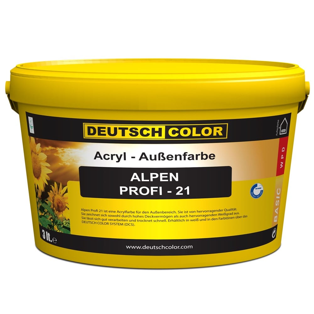 Alpen Profi 21 është bojë me bazë rezine akrilike për përdorim të jashtëm. Karakterizohet nga fuqi mbuluese dhe bardhësi e shkëlqyer. Është një produkt ekonomik për përdorim profesional, i cili mbron sipërfaqet e jashtme në varësi të kushteve atmosferike.