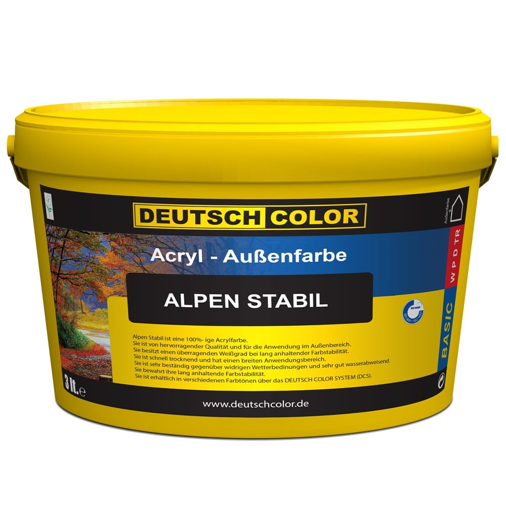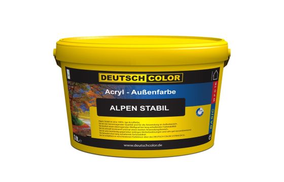 Alpen Stabil eshte nje boje akrilike e nje kualiteti te shkelqyer ,per perdorim te jashtem. Ajo ka nje mbulueshmeri shume te larte dhe bardhesi gjithashtu.Ka nje punueshmeri shume te mire dhe nivelim shume te mire,tharje te shpejte dhe jep nje siperfaqe te mire mat