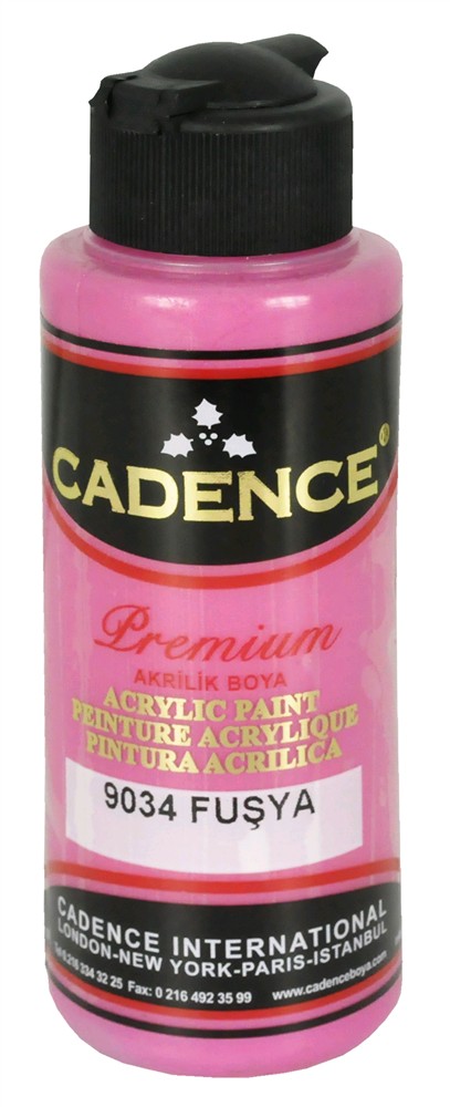 Bojë akrilike shumë përdorimshe. Cilësia e parë e bojërave akrilike përdoret për piktura dekorative. Boja akrilike është me bazë uji dhe jo toksike. Është gjysmë me shkëlqim mund të lyhet me sprite për të krijuar variacione shkëlqimesh. CADENCE ka një gamë të gjërë ngjyrash që mund të përzihen. Ka një qëndrueshmëri të lartë dhe paketime që ju përgjigjet të gjitha nevojave, mbulim të shkëlqyer dhe përzihet lehtë. Kjo bojë mund të përdoret në disa sipërfaqe si: dru, MDF, kanavas, suva, mure, qirinj, pëlhure, lëkure, polisterol, baltë polimer dhe metal.