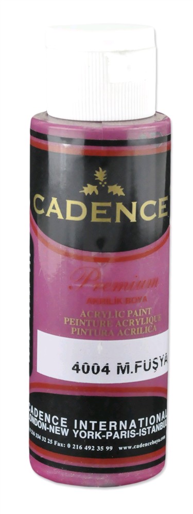 Bojë akrilike shumë përdorimshe. Cilësia e parë e bojërave akrilike përdoret për piktura dekorative. Boja akrilike është me bazë uji dhe jo toksike. Është gjysmë me shkëlqim mund të lyhet me sprite për të krijuar variacione shkëlqimesh. CADENCE ka një gamë të gjërë ngjyrash që mund të përzihen. Ka një qëndrueshmëri të lartë dhe paketime që ju përgjigjet të gjitha nevojave, mbulim të shkëlqyer dhe përzihet lehtë. Kjo bojë mund të përdoret në disa sipërfaqe si: dru, MDF, kanavas, suva, mure, qirinj, pëlhure, lëkure, polisterol, baltë polimer dhe metal.