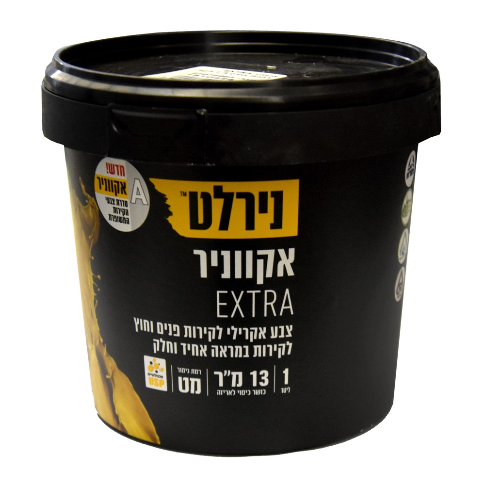 Bojë akrilike, Nirlat, Aquanir, e cilësisë së parë, 1 Lt, Baza A, tretet me 10% ujë dhe mbulon 16 m2/ Lt, në 2 duar