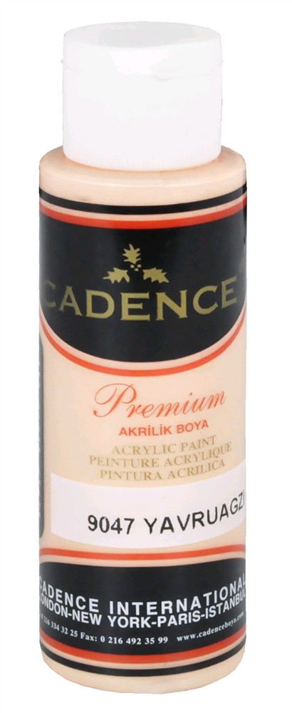 Bojë akrilike shumë përdorimshe. Cilësia e parë e bojërave akrilike përdoret për piktura dekorative. Boja akrilike është me bazë uji dhe jo toksike. Është gjysmë me shkëlqeim mund të lyhet me sprite për të krijuar variacione shkëlqimesh. CADENCE ka një gamë të gjërë ngjyrash që mund të përzihen. Ka një qëndrueshmëri të lartë dhe paketime që ju përgjigjet të gjitha nevojave, mbulim të shkëlqyer dhe përzihet lehtë. Kjo bojë mund të përdoret në disa sipërfaqe si: dru, MDF, kanavas, suva, mure, qirinj, pëlhure, lëkure, polisterol, baltë polimer dhe metal.