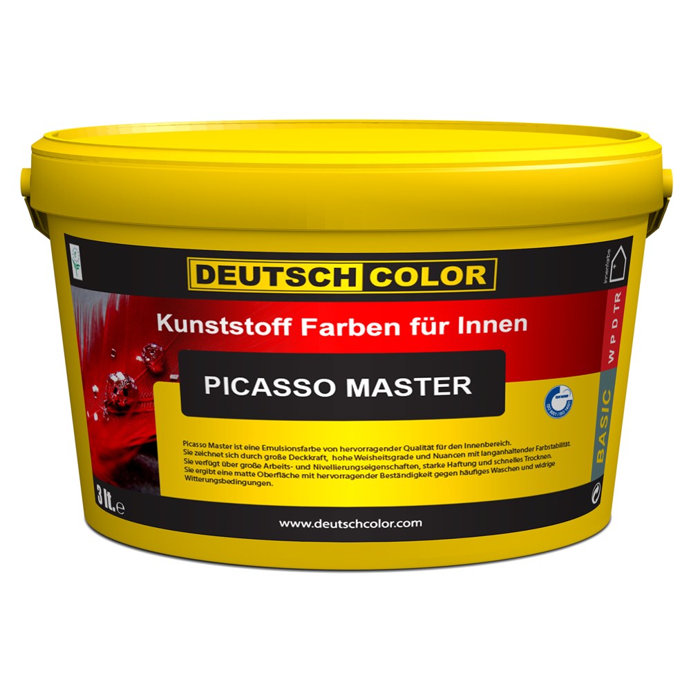 Picasso Master është bojë plastike me shkëlqim dhe cilësi të shkëlqyera për përdorim të brendshëm. Ka veti shumë të mira mbuluese, bardhësi dhe nuanca me stabilitet të lartë dhe ngjyra të qëndrueshme. Ka punueshmëri dhe nivelim shumë të mirë. Karakterizohet nga ngjitje e fortë dhe rezistencë e shkëlqyer kundrejt larjeve të shpeshta, ndaj njollave të verdha të tymi të duhanit.