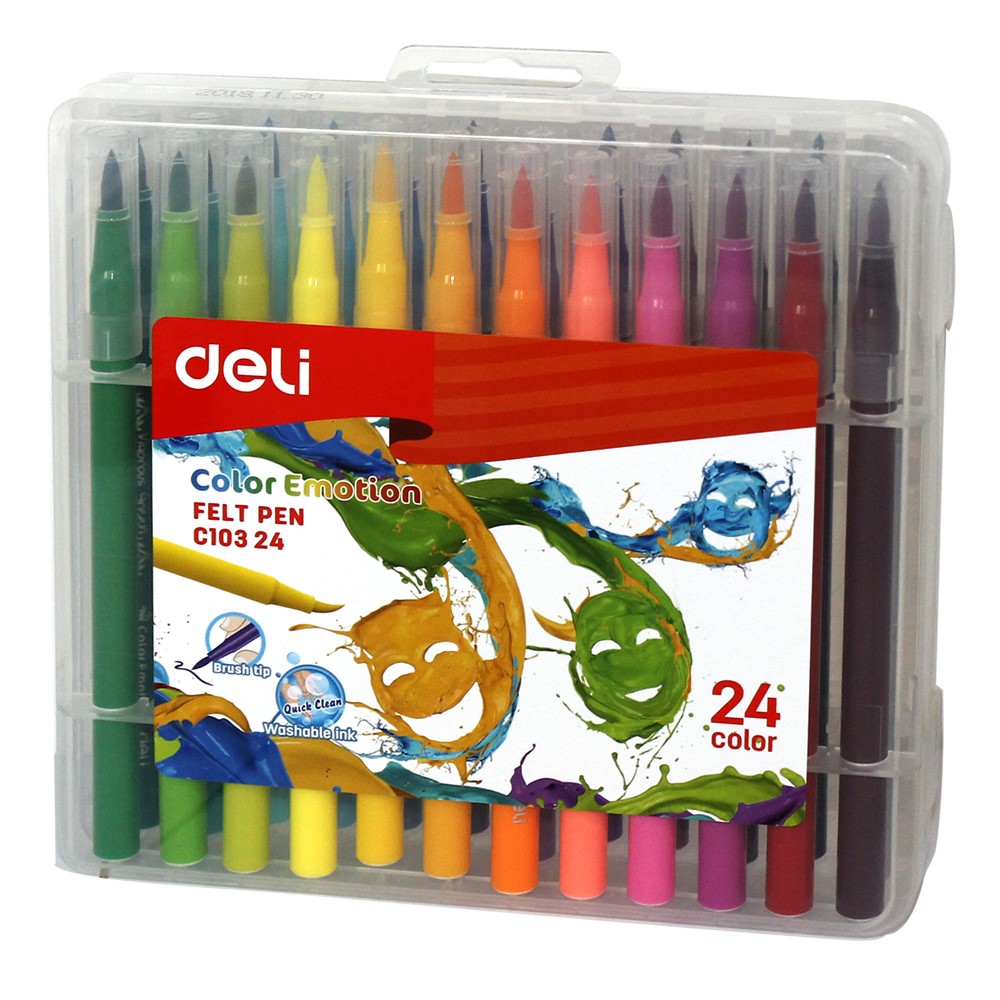Bojra uji Deli, me majë të hollë, prej materiali plastik. Paketimi përmban 24 ngjyra të ndryshme. Përdoren nga fëmijët në kopështe, shkolla etj, për të ngjyrosur në letër.