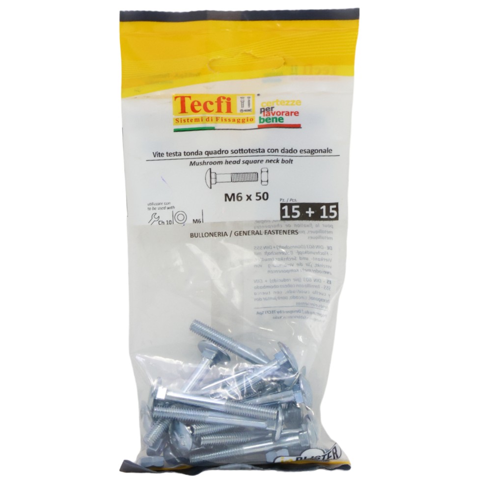 Po vlerësoni:Bullon koke çader+dado, M6x50mm , Bag 15