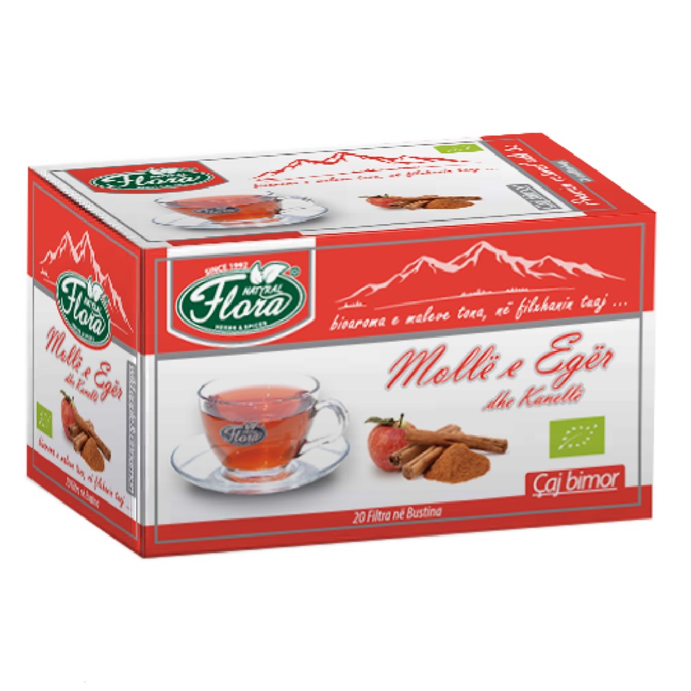 Çaj bimor, me një përzierje që përmban mollë të egër, mëllagë hibiskus dhe kanellë, të pasur me vitaminë A, B1, B2, B3, C, acid pantotenik, tiaminë, riboflavinë, niacinë, folate, proteina, kalcium, hekur, magnez, fosfor, kalium, bakër, mangan, acide yndyrore Omega 3, acide yndyrore Omega 6, yndyrna natyrale, karbohidrate, antioksidantë dhe fibra dietike. Antioksiduesit nga kanella dhe hibiskusi stabilizojnë nivelin e sheqerit në gjak dhe zvogëlojnë dëshirën për karbohidrate. Kanella po ashtu ndikon te tretja jo e mirë, ndihmon në pakësimin e triglicerideve, nuk përmban kalori, pastron organizmin nga toksinat dhe përshpejton metabolizmin. Mënyra e përgatitjes: Një filtër rekomandohet të përdoret për një filxhan çaji. Të shtohet në filxhan uji i sapo zier (100 º C) duke u munduar të mos hidhet sipër filtrit, për të evituar fryrjen e tij. Të lihet 5-6 minuta dhe më pas të konsumohet duke u ëmbëlsuar me mjaltë ose sheqer sipas dëshirës. Mund të shoqërohet me një fetë limon ose portokall.