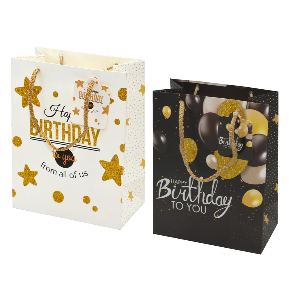 Këto canta dhuratash janë tepër të përshtatshme për të mbajtur dhuratat, me një dizenjo të bukur. Kane nje permase prej 23x18x10 cm, dhe vijne ne ngjyre te zeze ose te bardhe.