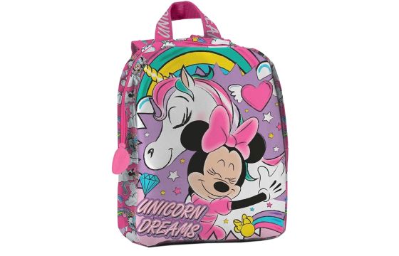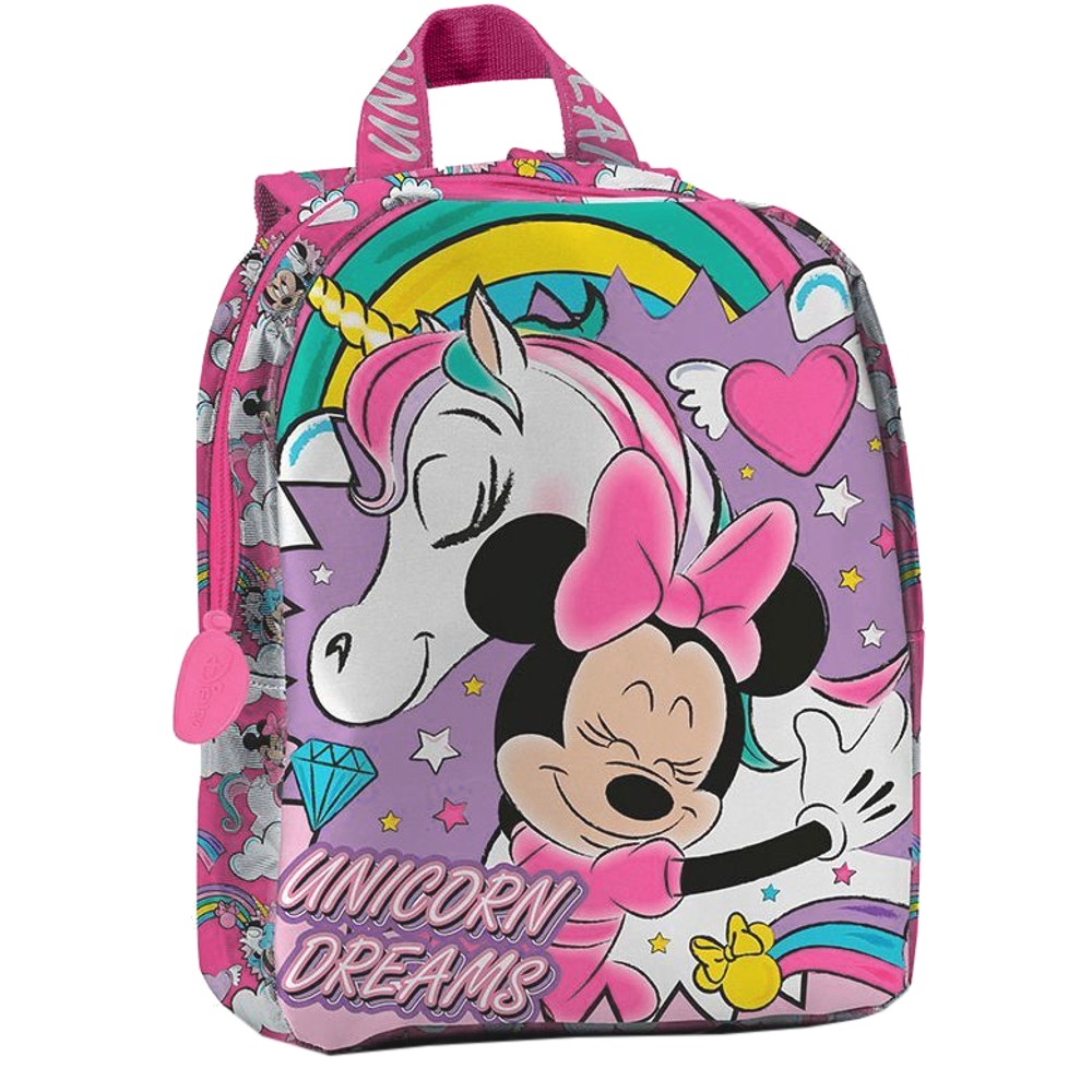 Cantë për fëmijë, Minnie Mouse, 22x27x8.5 cm, është një cantë e dizenjuar posaçërisht për fëmijë, e cila ka motive të personazhit të famshëm Minnie Mouse. Canta është bërë me materialin poliestër dhe ka një dizajn të kombinuar me ngjyrën rozë dhe lejla.