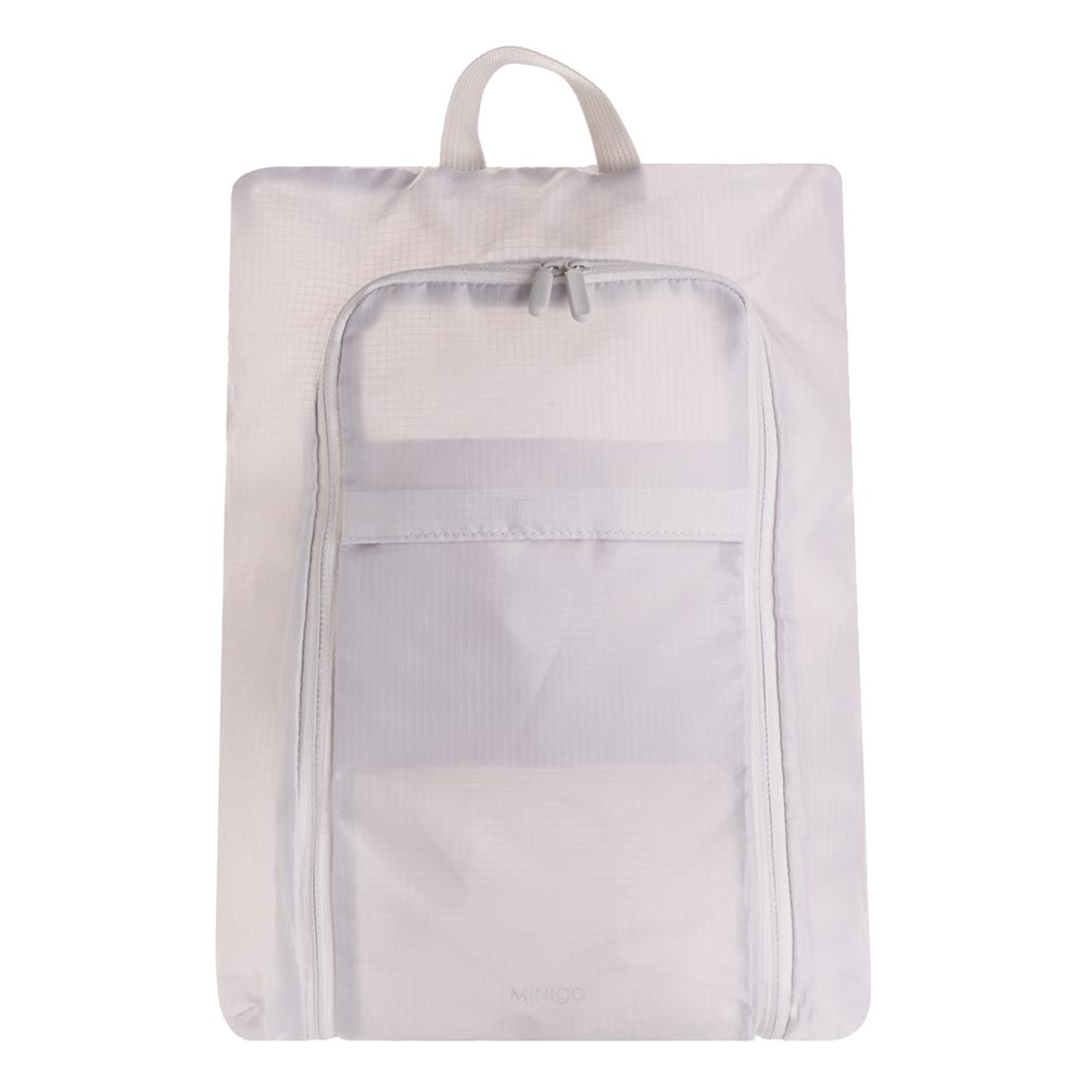 Çantë për magazinimin e këpucëve, prej materiali fibre poliestre, me përmasa 26.5x9x34.5 cm, në ngjyrë gri, e cila është e pajisur me një xhep të madh me zinxhir të dyfishtë dhe një dorezë mbajtëse në pjesën e sipërme. Materiali përbërës është rezistent ndaj përdorimit, rezistent ndaj njollave dhe rrudhave, dhe ruan formën edhe nëse paloset. Përdoret për ruajtjen dhe magazinimin e këpucëve të ndryshme, duke ndihmuar në menaxhimin e hapësirave të kufizuara në ambiente shtëpie.