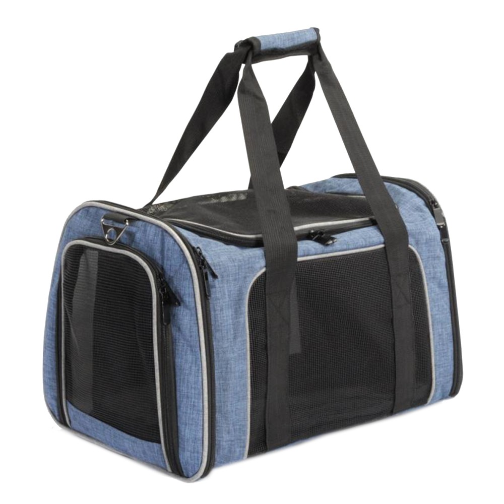 Për të transportuar në mënyrë të sigurt qenin, macen ose lepurin tuaj të vogël. Pëlhurë e jashtme me efekt xhins me brendësi të papërshkueshme nga uji dhe fund të heqshëm për pastrim të lehtë. Rrjetë e gjerë në tre anët për frymëmarrje të shkëlqyer, me hapje të sipërme dhe anësore. Kompletuar nga dy xhepa dhe rrip supe. Paloset lehtësisht për transportueshmëri të lehtë kur nuk përdoret.