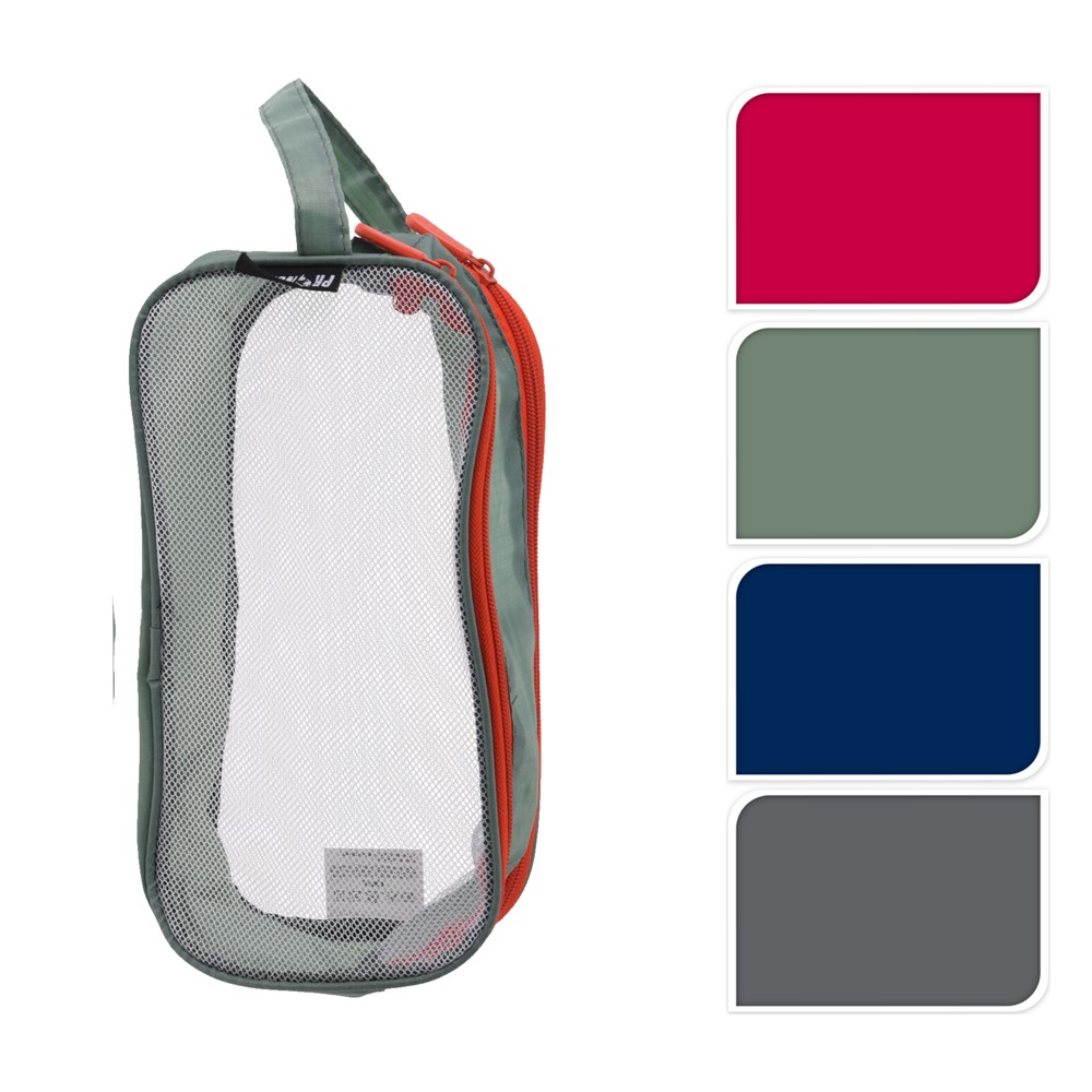 Çantë organizimi për udhëtim, prej materiali poliestre dhe rrjetë, në ngjyra të ndryshme, e pajisur me një xhep të madh me zinxhir dhe me mbajtëse anësore. Përdoret për ruajtjen dhe transportimin e produkteve të higjienës personale dhe aksesorëve të ndryshëm, si celularë, stilolapsa, karikues, bateri të jashtme, blloqe shënimesh, etj., si dhe për organizimin e tyre në çantat e udhëtimit. Ky produkt është i lehtë dhe ka përmasa kompakte, që e bëjnë të përshtatshëm për t'u marrë me vete në udhëtime.