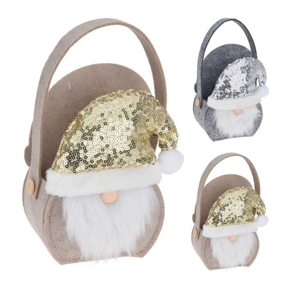 Canta ne ngjyrë bezhe ose gri, ne formen e Babagjysht të vitit të ri me kapuc me xixa, duke e sjelle kete personazh me afer femijeve. Keto canta mund të perdorenper dekorim duke u varur ne mur ose ne pemën e Krishtlindjeve ose per tu mbushur me embelsira e biskota per femijet.