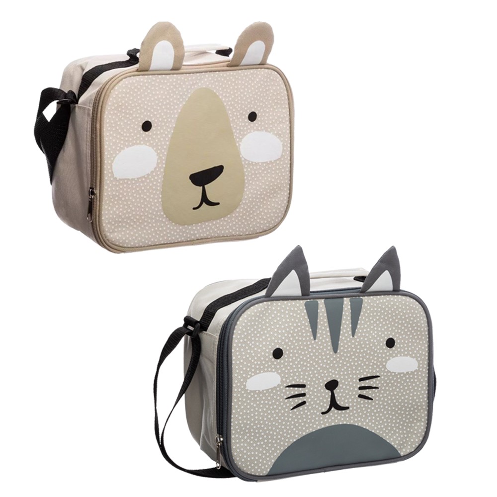 Çantë termike për fëmijë, prej materiali poliestre, me veshje të brendshme prej materiali klorur polivinili (PVC) dhe polipropilen, me përmasa 23x11x19 cm, në ngjyra dhe dizajne të ndryshme, e pajisur me një rrip mbajtës me gjatësi të rregullueshme, për një mbajtje më të lehtë gjatë përdorimit. Përdoret për ruajtjen e ushqimeve dhe pijeve të ndryshme në një temperaturë të freskët. Ky produkt është i përshtatshëm për përdorim nga fëmijët e moshës mbi 4 vjeç.